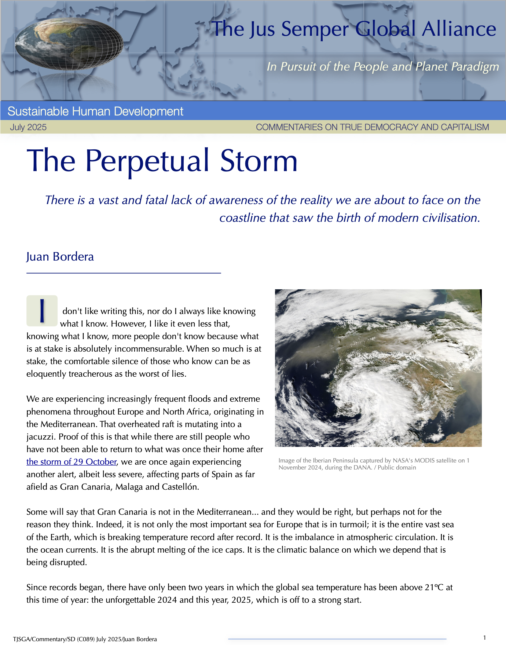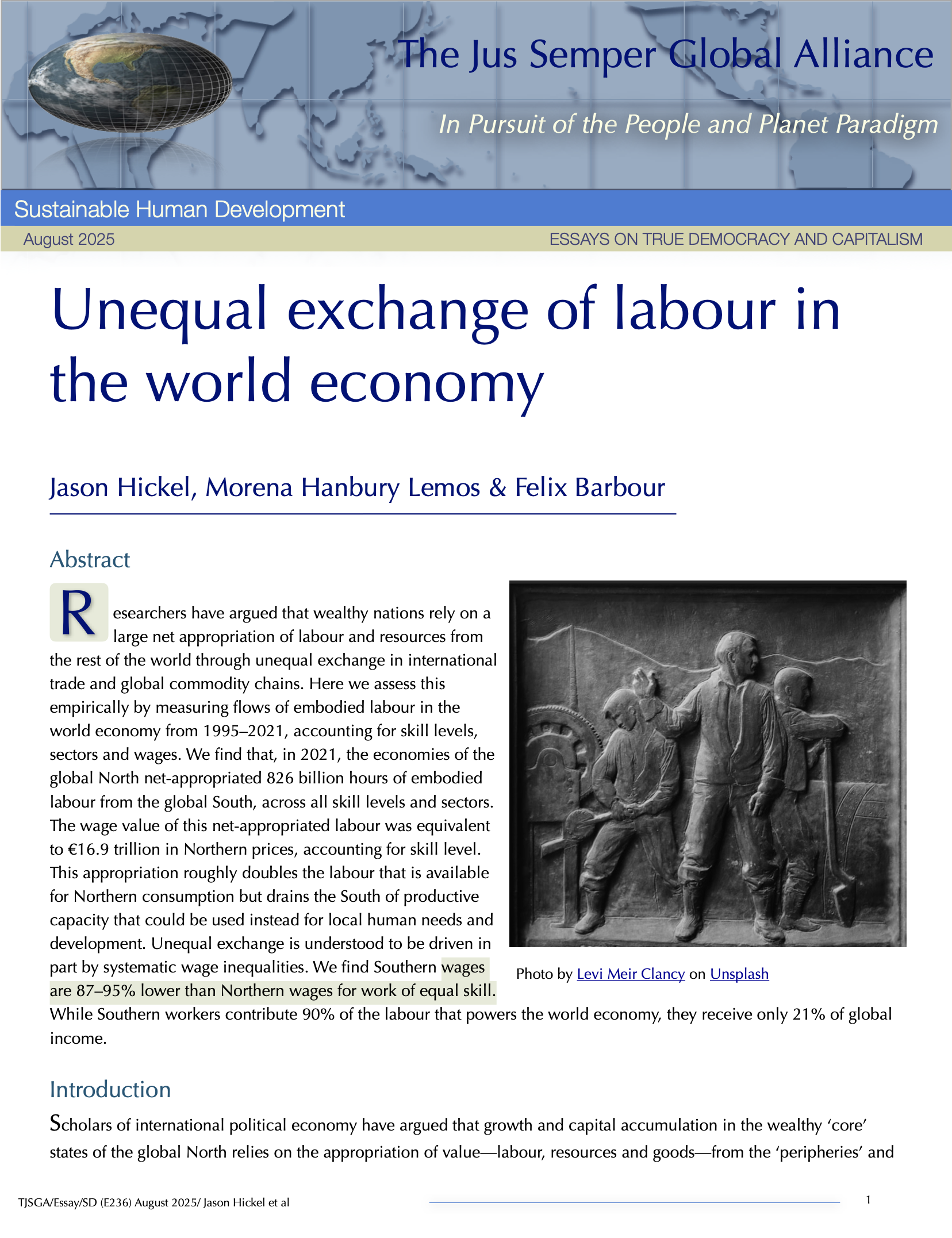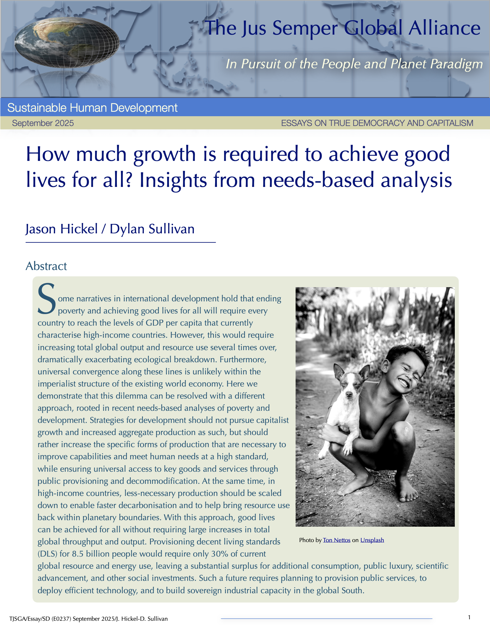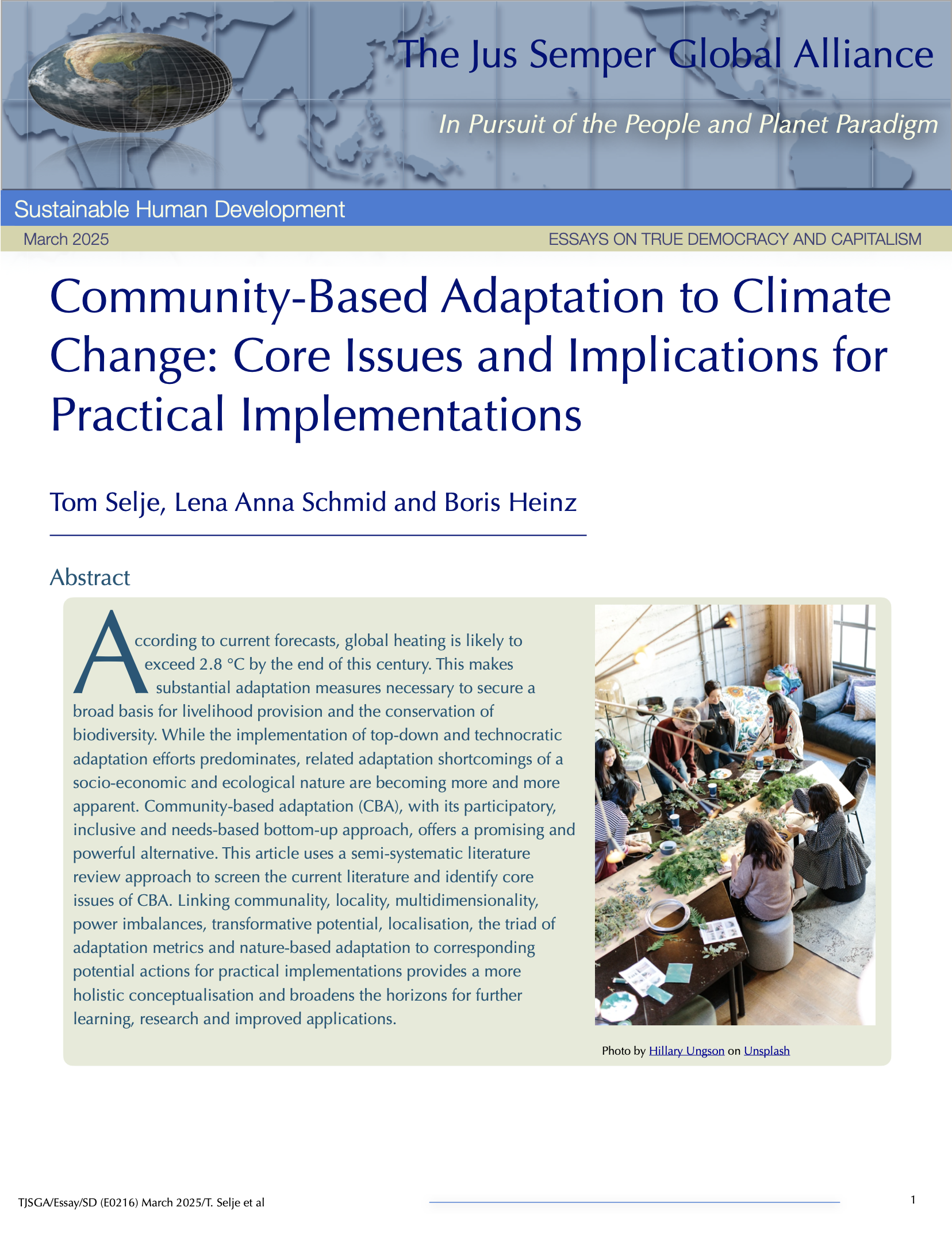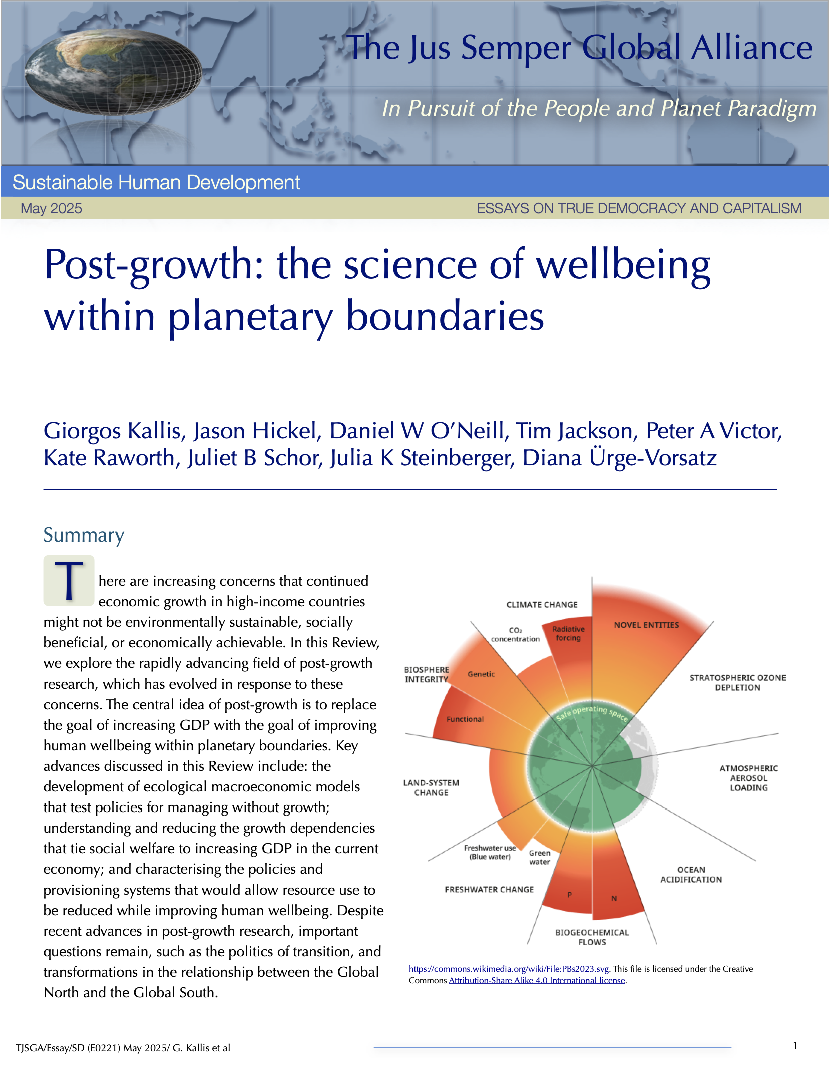 Transitioning to Geocratia — the People and Planet and Not the Market Paradigm — First StepsParting from the fact that saving Planet Earth, our home, changes everything, we need to build a new ethos where the majority of humankind commits to a system whose only purpose is the pursuit of the welfare of people and Planet Earth. This requires that all Earth resources necessary for the enjoyment of life of all living things be managed to achieve true long-term sustainability. — Álvaro J. de Regil The Unbearable Unawareness of our Ecological Existential CrisisOver the past two years, the full report on Climate Change Mitigation by IPCC scientists, as well as research from other centres such as the Stockholm Resilience Centre, has consistently confirmed that we are on a doomsday trajectory. Unless we move rapidly in the opposite direction, the chances that we will face planetary catastrophes that seriously threaten the existence of life on our planet in the next twenty years are realistic and probable. Unsustainable capitalism keeps us deluded and largely unaware that we are on the brink of a serious existential risk. Therefore the great challenge is to provoke the awareness and critical thinking of ordinary citizens. Only a Citixens Revolution can stop our demise, but capitalism’s behemoth keeps people deceitful and mostly unaware of being on the verge of a catastrophic end. We must arouse Now! –– Álvaro J. de Regil Earth beyond six of nine planetary boundariesThe update of the planetary boundaries framework reveals that six of the nine boundaries have been transgressed, suggesting that the Earth is now outside the safe operating space for humanity. Ocean acidification is about to be exceeded, while aerosol loading exceeds the limit regionally. Stratospheric ozone levels have recovered slightly. The transgression level has increased for all boundaries previously identified as exceeded. Given that primary production drives the biosphere functions of the Earth system, human appropriation of net primary production is proposed as a control variable for the functional integrity of the biosphere. This boundary has also been transgressed. Modeling the Earth system with different levels of transgression of climate change and Earth system boundaries illustrates that these anthropogenic impacts on the Earth system must be considered in a systemic context. —Katherine Richardson et al Controversial Demographic Projections Under Climate Collapse in 2050 - South and Mesoamerica in a Global ContextThe corporate sector is building another aggressive re-engineering of global agrifood systems in South America and Mesoamerica. The region represents a pillar for global food security, warns the UN in the New Mission. Capitalist euphoria assumes 10 billion inhabitants by 2050. This is forging higher agricultural productivity, innovation, digitalisation and the expansion of standardised agriculture. Thus, they produce and market food destined for populations with some or enough consumption capacity, overconsumption and waste of food with equivalent carbon footprints. –– Nubia Barrera Silva The pressing priority of saving the AmazoniaThe world's most biodiverse region is threatened by deforestation levels close to the point of no return. Despite this, the countries involved failed to reach agreements at the last summit in Brazil in August. –– David Roca Basadre Safe and Just Earth System BoundariesHumanity is well into the Anthropocene, the proposed new geological epoch where human pressures have put the Earth system on a trajectory moving rapidly away from the stable Holocene state of the past 12,000 years, which is the only state of the Earth system we have evidence of being able to support the world as we know it. Seven of eight globally quantified safe and just Earth System Boundaries (ESB) and at least two regional safe and just ESBs in over half of global land area are already exceeded. We propose that our assessment provides a quantitative foundation for safeguarding the global commons for all people now and into the future. — Johan Rockström et al ‘The energy transition has not yet begun’Interview with Jean-Baptiste Fressoz (France, 1977), historian of science, technology, and the environment, and professor at the School for Advanced Studies in the Social Sciences in Paris. He has just published Without Transition: A New History of Energy (Seuil), which will be translated and published in Spanish by Arpa. He is also the co-author, with Christophe Bonneuil, of The Anthropocene Event: The Earth, History, and Us (Points Histoire) and The Joyful Apocalypse: A History of Technological Risk (Seuil). —Hervé Kempf Community-Based Adaptation to Climate Change: Core Issues and Implications for Practical ImplementationsAccording to current forecasts, global heating is likely to exceed 2.8 °C by the end of this century. This makes substantial adaptation measures necessary to secure a broad basis for livelihood provision and the conservation of biodiversity. While the implementation of top-down and technocratic adaptation efforts predominates, related adaptation shortcomings of a socio-economic and ecological nature are becoming more and more apparent. Community-based adaptation (CBA), with its participatory, inclusive and needs-based bottom-up approach, offers a promising and powerful alternative. This article uses a semi-systematic literature review approach to screen the current literature and identify core issues of CBA. ––Tom Selje et al Capitalism and Extreme Poverty: A Global Analysis of Real Wages, Human Height, Mortality Since the Long 16th CenturyThis paper assesses claims that, prior to the 19th century, around 90% of the human population lived in extreme poverty (defined as the inability to access essential goods), and that global human welfare only began to improve with the rise of capitalism. The rise of capitalism caused a dramatic deterioration of human welfare. In a