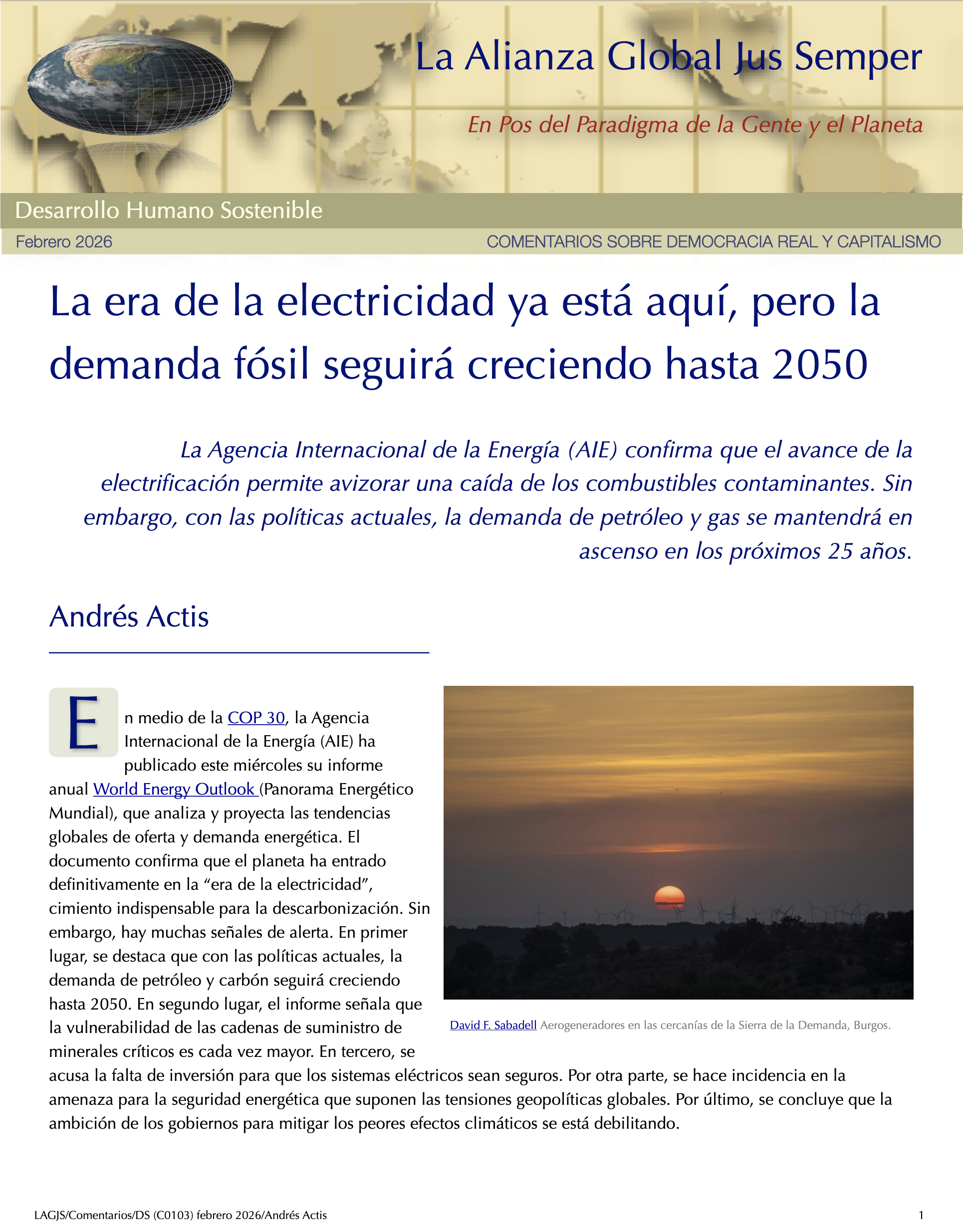 Necesitamos nuevas instituciones políticas y económicas que den prioridad a la estabilidad a largo plazo de nuestra biosfera, así como a las preocupaciones económicas de los trabajadores de todo el mundo. Y para llegar a ello, tendremos que comprender mejor la compleja relación entre la sociedad, la energía y la tecnología; es decir, comprender cómo las acciones de las instituciones sociales que rigen nuestras vidas afectan a las dinámicas energéticas y tecnológicas que, cada vez más, rigen la ecosfera global.