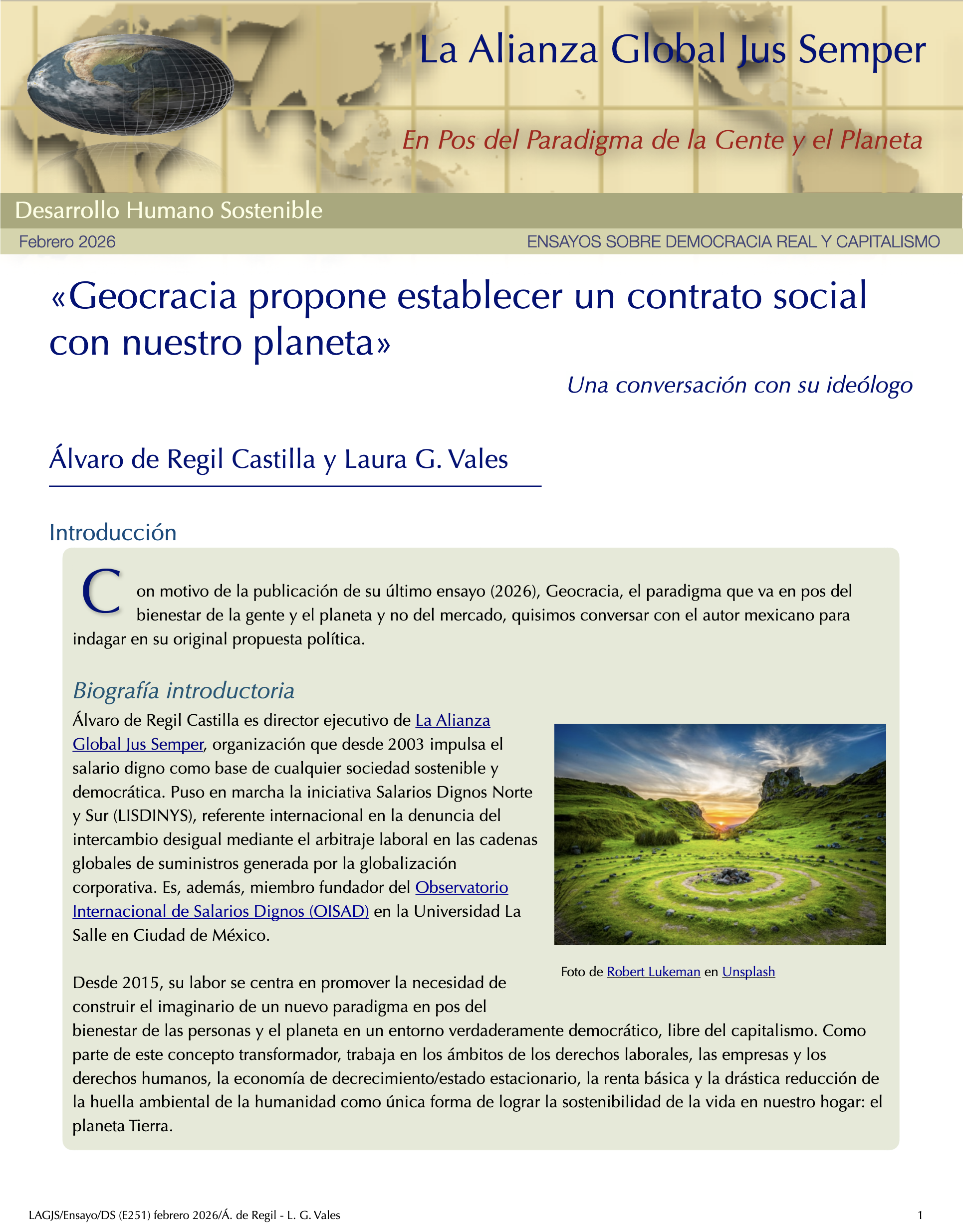 «Geocracia propone establecer un contrato social con nuestro planeta»