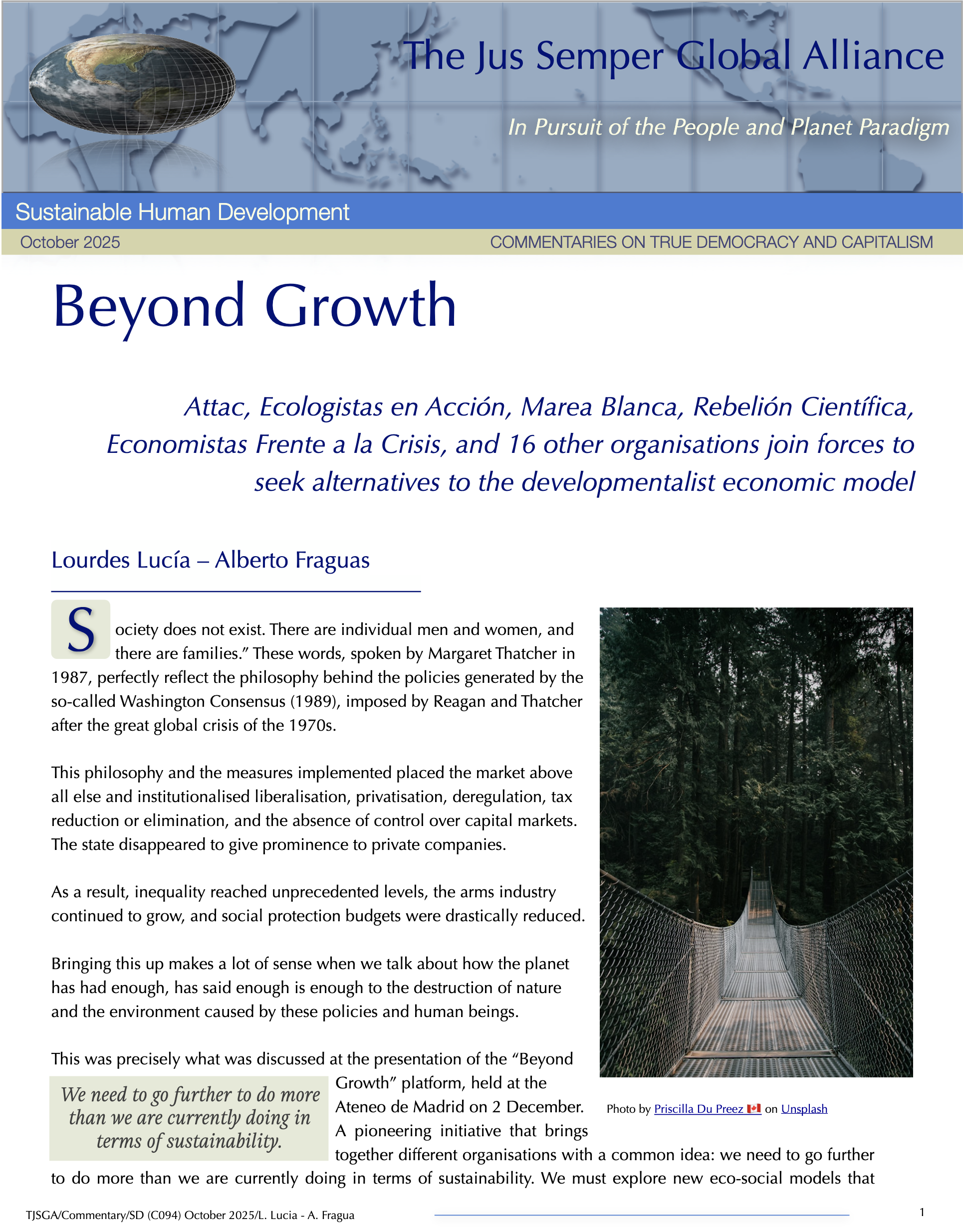 Parting from an ethos of true democracy and true sustainability, We, the citizenry, work to advance the paradigm whose only purpose is to go in pursuit of the welfare of People and Planet and NOT the market.