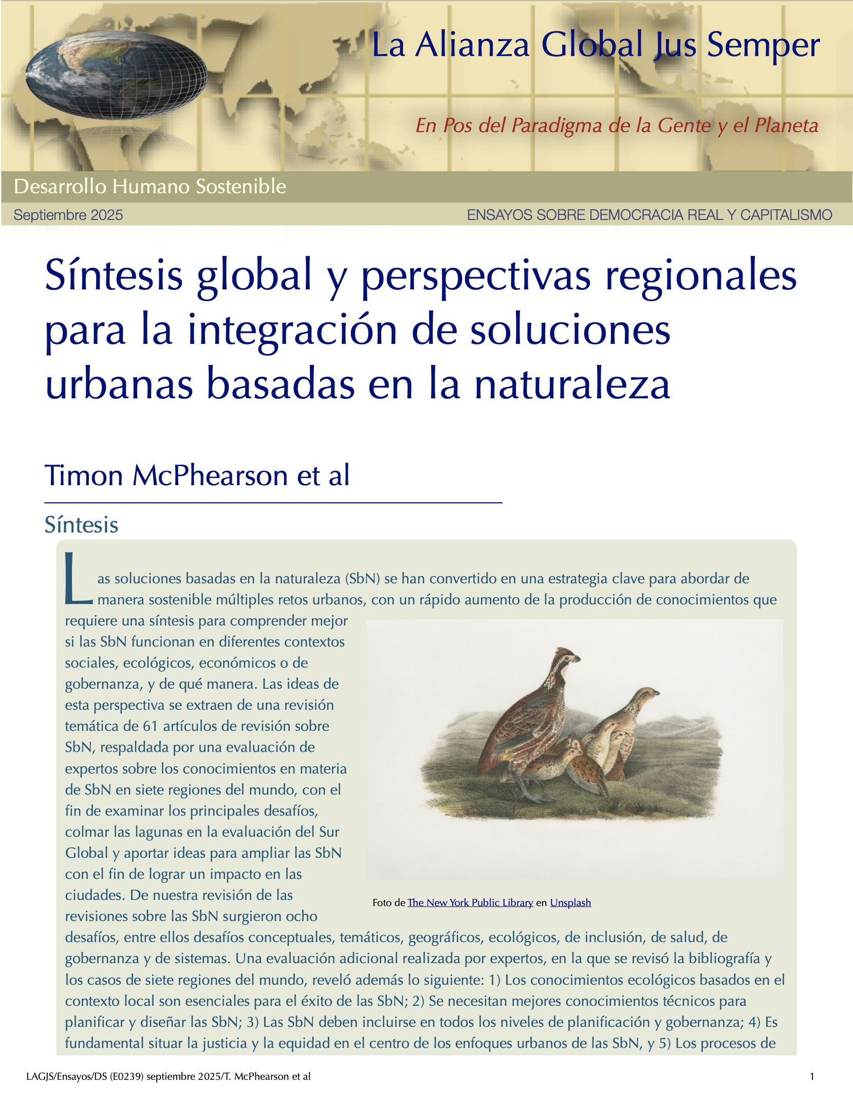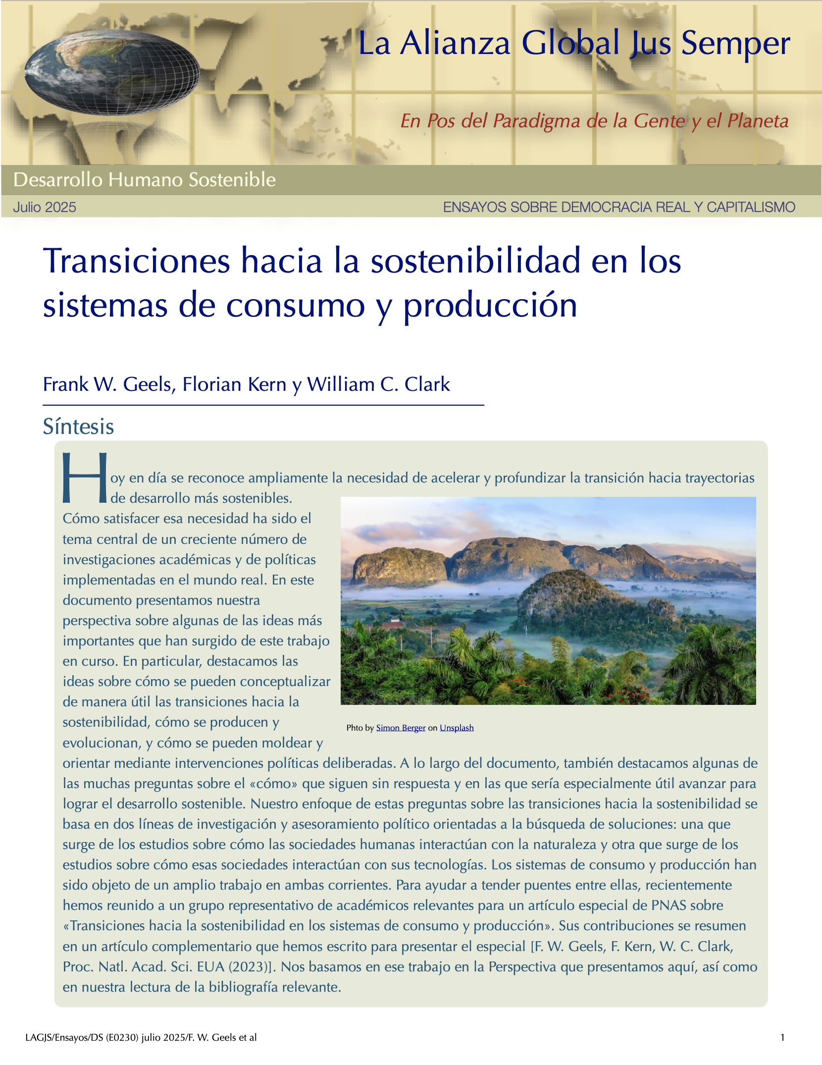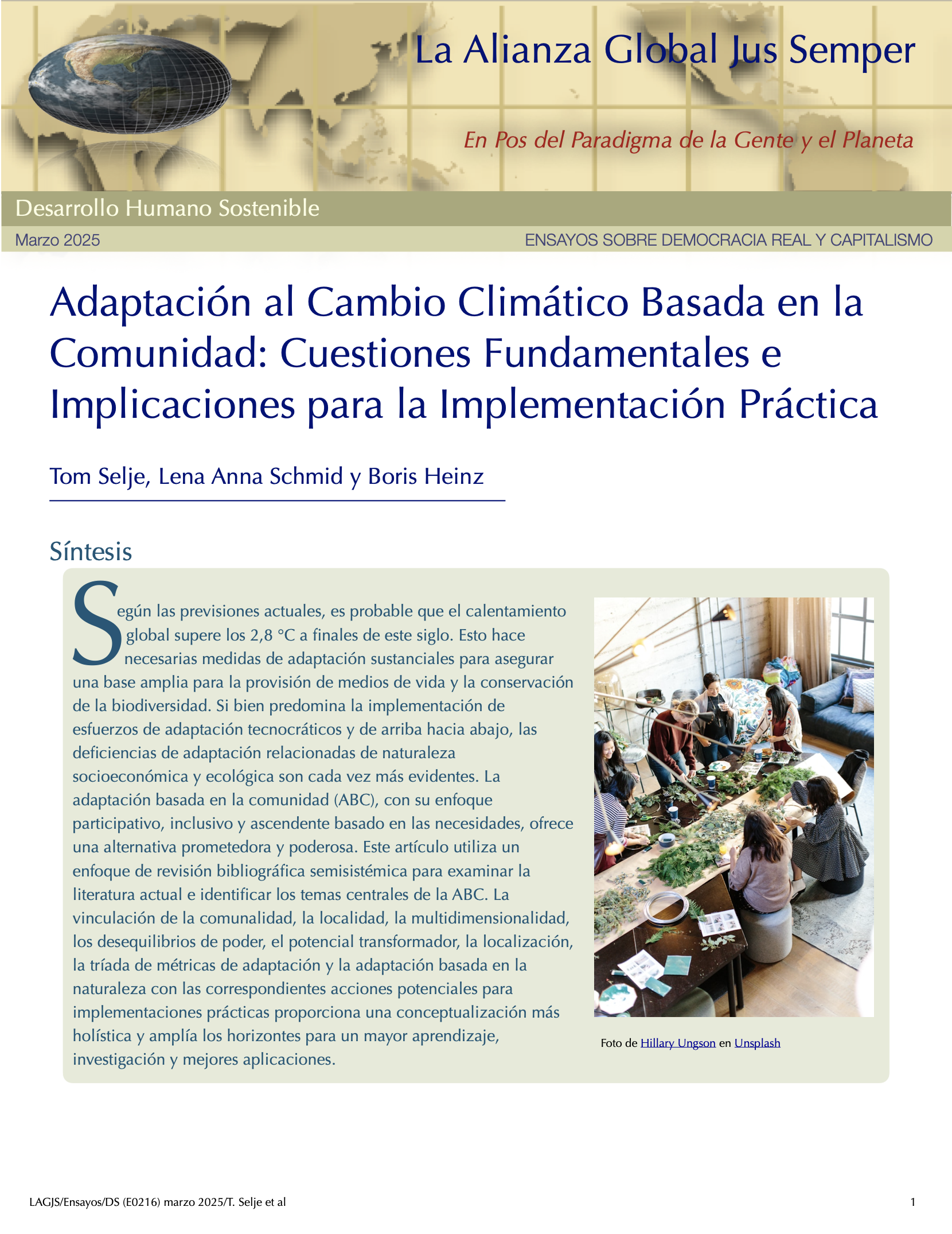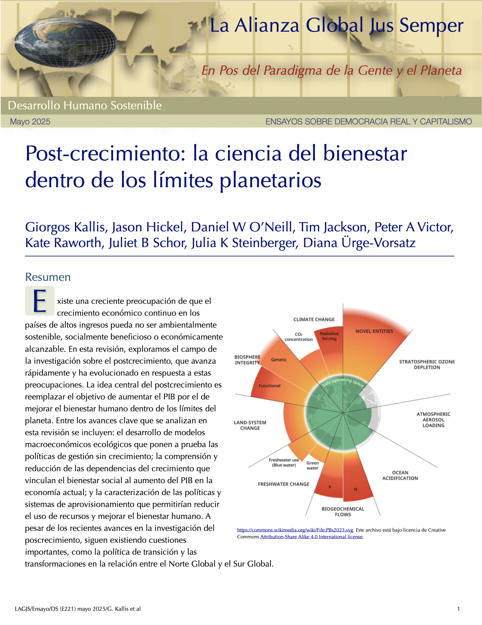 Transitando a Geocracia — Paradigma de la Gente y el Planeta y No el Mercado — Primeros PasosPartiendo del hecho de que salvar el planeta Tierra, nuestro hogar, cambia todo, necesitamos construir un nuevo ethos en el que la mayoría de la humanidad se comprometa con un sistema cuyo único propósito sea la búsqueda del bienestar de las personas y el planeta Tierra. Esto requiere que todos los recursos de la tierra necesarios para el disfrute de la vida de todos los seres vivos se gestionen para lograr una verdadera sostenibilidad a largo plazo. — Álvaro de Regil Castilla La Insoportable Falta de Conciencia de Nuestra Crisis Ecológica ExistencialEn los últimos dos años, el informe completo sobre la Mitigación del Cambio Climático elaborado por los científicos del IPCC, así como las investigaciones de otros centros, como el Centro de Resiliencia de Estocolmo, han confirmado sistemáticamente que seguimos una trayectoria fatal. A menos que viremos rápidamente en la dirección contraria, las probabilidades de que nos enfrentemos a catástrofes planetarias que pongan en grave riesgo la existencia de vida en nuestro planeta en los próximos veinte años son realistas y probables. El insostenible capitalismo nos mantiene engañados y mayormente inconscientes de estar al borde de un grave riesgo existencial. Por ello el gran reto es provocar la toma de conciencia y el pensamiento crítico del ciudadano común. Sólo una revolución ciudadana podrá construir un nuevo paradigma en beneficio de la gente y el planeta y no el mercado. –– Álvaro de Regil Castilla La Tierra más allá de seis de los nueve límites planetariosLa actualización del marco de los límites planetarios revela que se han transgredido seis de los nueve límites, lo que sugiere que la Tierra se encuentra ahora fuera del espacio operativo seguro para la humanidad. La acidificación de los océanos está a punto de traspasarse, mientras que la carga de aerosoles supera regionalmente el límite. Los niveles de ozono estratosférico se han recuperado ligeramente. El nivel de transgresión ha aumentado para todos los límites anteriormente identificados como sobrepasados. Dado que la producción primaria impulsa las funciones de la biosfera del sistema Tierra, se propone la apropiación humana de la producción primaria neta como variable de control de la integridad funcional de la biosfera. Este límite también se ha transgredido. La modelización del sistema Tierra de diferentes niveles de transgresión de los límites del cambio climático y del sistema Tierra ilustra que estos impactos antropogénicos sobre el sistema Tierra tienen que considerarse en un contexto sistémico. —Katherine Richardson et al Controvertidas Proyecciones Demográficas Bajo el Colapso del Clima en 2050 — Sud y Mesoamérica en Contexto GlobalDesde el sector corporativo se construye otra agresiva reingeniería en torno a los sistemas agroalimentarios globales en América del Sur y Mesoamérica. La región representa un pilar para la seguridad alimentaria global advierte la ONU en la Nueva Misión. La euforia capitalista supone 10 millardos de habitantes en 2050. Así fragua mayor productividad agrícola, innovación, digitalización y expansión de la agricultura estandarizada. Así, producen y comercializan alimentos destinados a los poblaciones con alguna o suficiente capacidad de consumo, sobreconsumo y despilfarro de alimentos con equivalentes huellas de carbono. –– Nubia Barrera Silva La prioridad urgente de salvar la AmazoníaLa región con mayor biodiversidad del mundo se encuentra amenazada por niveles de deforestación cercanos al punto de no retorno. Pese a ello, los países implicados no alcanzaron acuerdos en la última cumbre de agosto, celebrada en Brasil. –– David Roca Basadre Los Límites Seguros y Justos del Sistema TierraLa humanidad se encuentra bien adentrada en el Antropoceno, la nueva época geológica propuesta en la que las presiones humanas han puesto al sistema Tierra en una trayectoria que se aleja rápidamente del estado estable del Holoceno de los últimos 12.000 años, que es el único estado del sistema Tierra del que tenemos pruebas de que puede sustentar el mundo tal y como lo conocemos. Siete de los ocho límites cuantificados a escala mundial ya se han superado. Estos se proponen como la base para salvaguardar los bienes comunes globales para todas las personas, ahora y en el futuro. — Johan Rockström et al “La transición energética aún no ha comenzado"Entrevista a Jean-Baptiste Fressoz (Francia, 1977), historiador de la ciencia, la tecnología y el medioambiente y profesor de la Escuela de Altos Estudios de Ciencias Sociales de París. Acaba de publicar Sin transición. Una nueva historia de la energía (Seuil), que será traducida y publicada en castellano por la editorial Arpa. También es autor, junto a Christophe Bonneuil, de El evento Antropoceno: la Tierra, la historia y nosotros (Points Histoire) y El apocalipsis alegre. Una historia de riesgo tecnológico (Seuil). —Hervé Kempf Adaptación al Cambio Climático Basada en la Comunidad:Según las previsiones actuales, es probable que el calentamiento global supere los 2,8 °C a finales de este siglo. Esto hace necesarias medidas de adaptación sustanciales para asegurar una base amplia para la provisión de medios de vida y la conservación de la biodiversidad. Si bien predomina la implementación de esfuerzos de adaptación tecnocráticos y de arriba hacia abajo, las deficiencias de adaptación relacionadas de naturaleza socioeconómica y ecológica son cada vez más evidentes. La adaptación basada en la comunidad (ABC), con su enfoque participativo, inclusivo y ascendente basado en las necesidades, ofrece una alternativa prometedora y poderosa. Este artículo utiliza un enfoque de revisión bibliográfica semisistémica para examinar la literatura actual e identificar los temas centrales de la ABC. —Tom Selje et al C