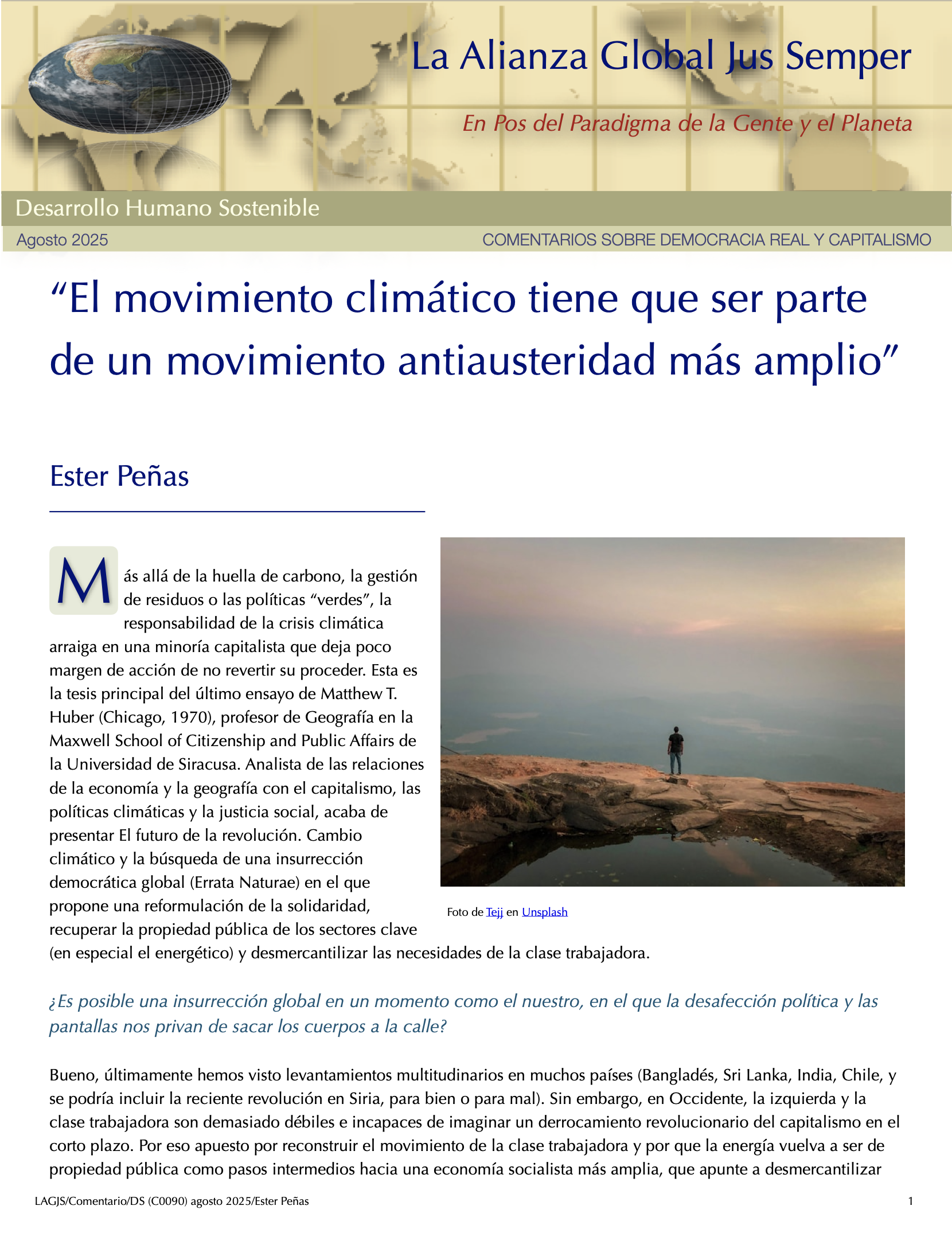 La combinación entre las dislocaciones ecológicas y sociales produce una dinámica extremadamente compleja y caótica, y en principio es imposible predecir a dónde conducirá este proceso. Sin embargo, está claro que es inevitable que se produzca una profunda convulsión sistémica que, en parte, ya ha comenzado. No se trata solo de la superación del neoliberalismo o la sustitución de ciertas tecnologías (aunque ambas cosas sean necesarias); se trata de una transformación que llega hasta los cimientos de nuestra civilización. La cuestión no es si se producirá esa transformación —sin duda lo hará, lo queramos o no—, sino cómo se producirá y en qué dirección se desarrollará.