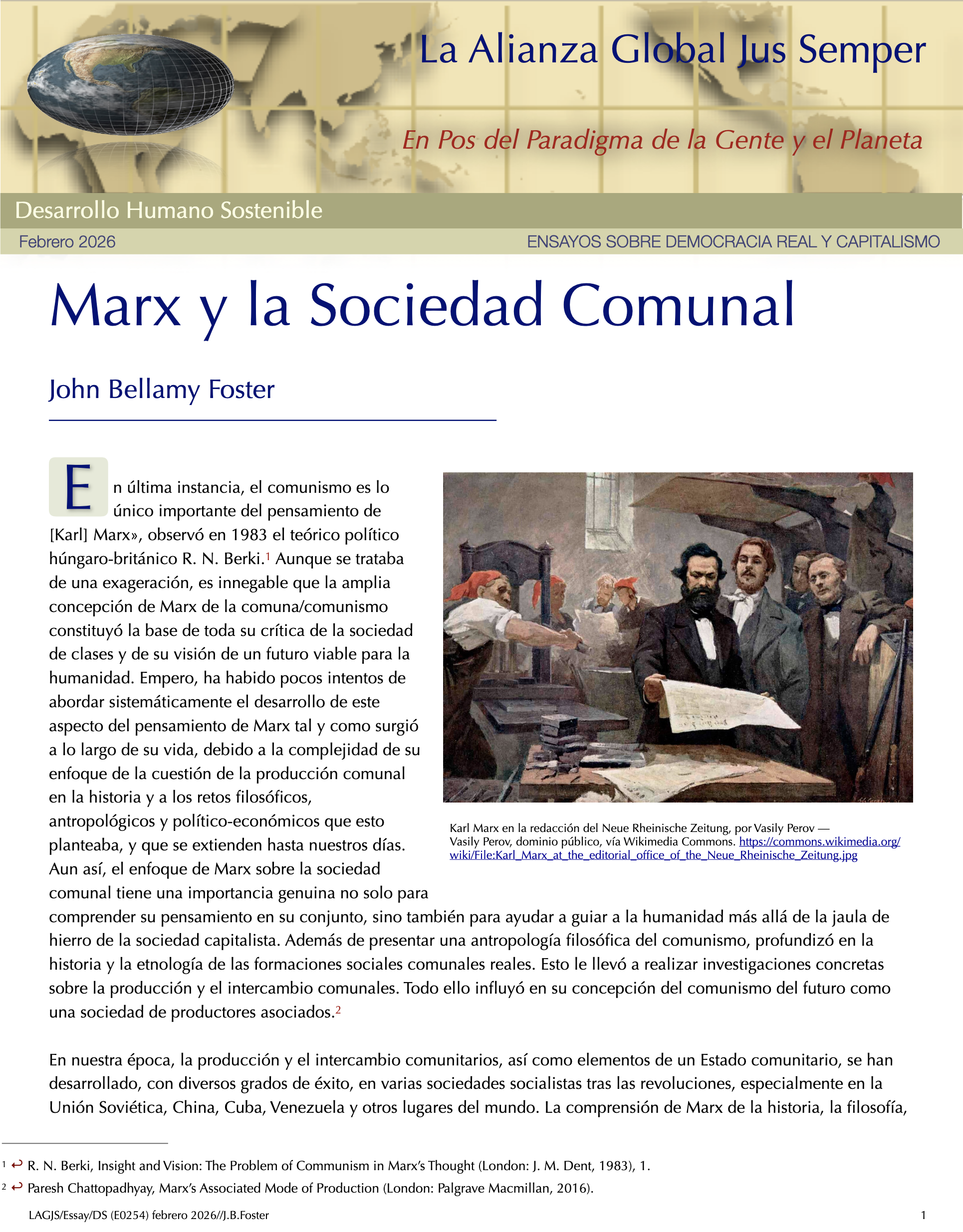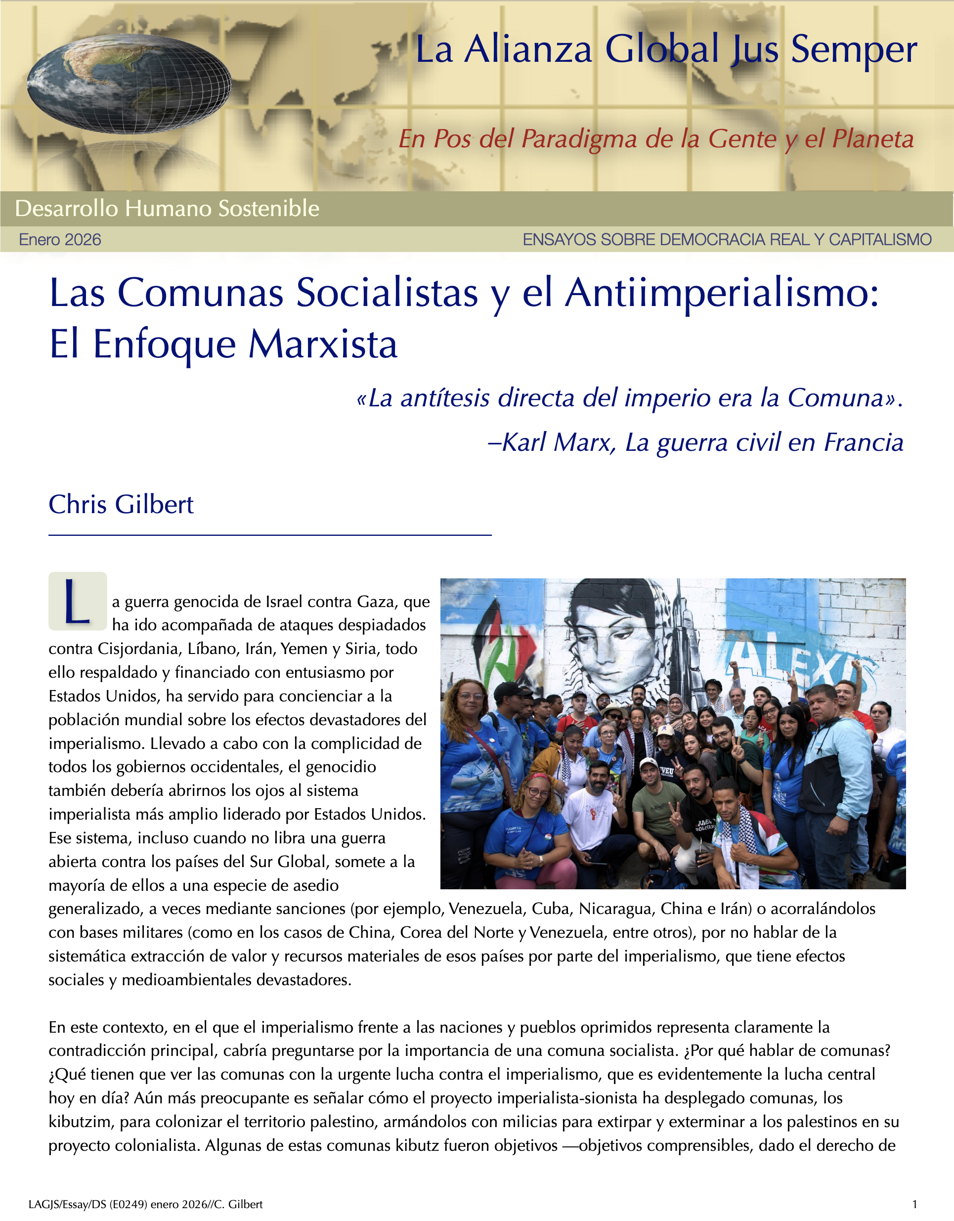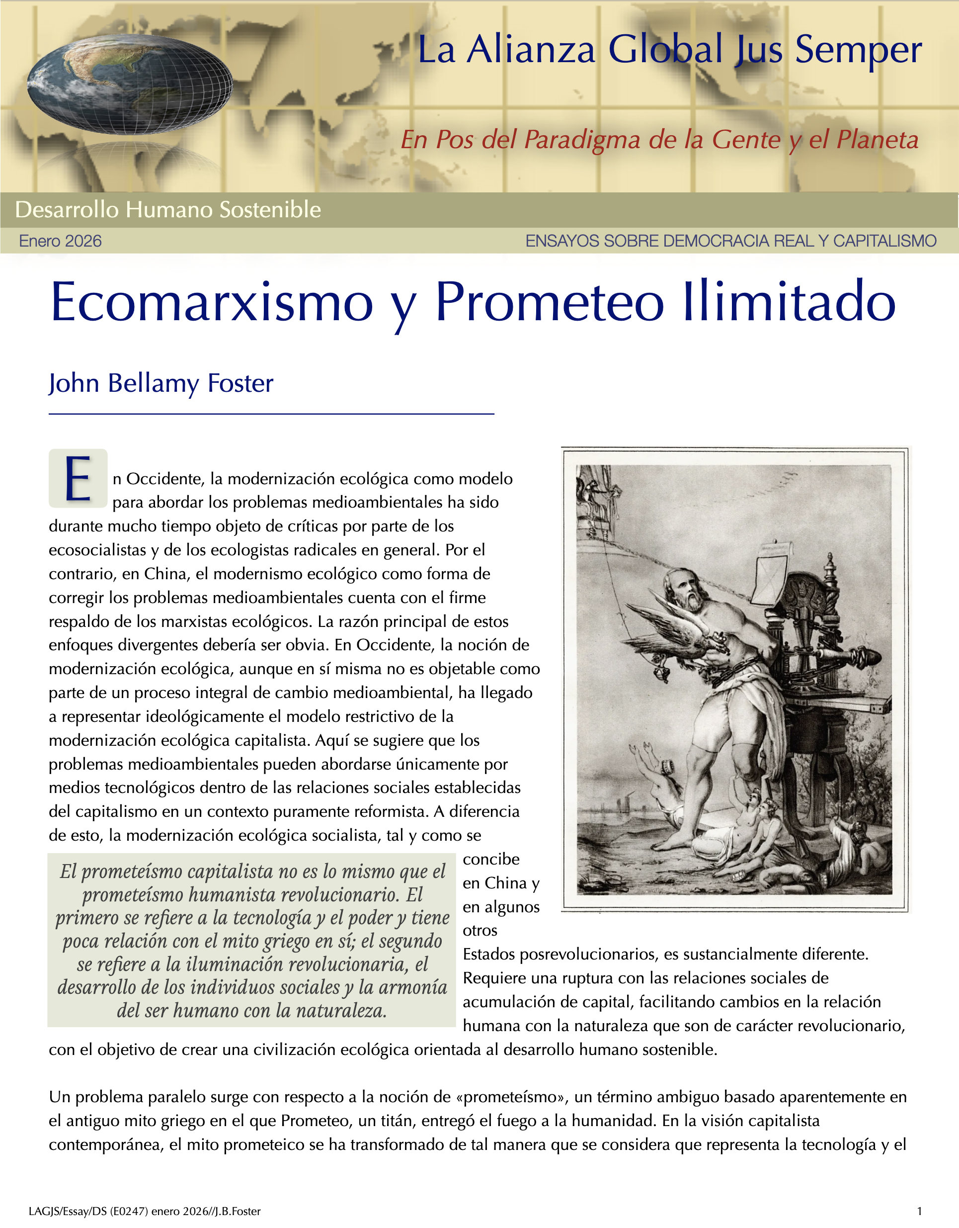 Transitando a Geocracia — Paradigma de la Gente y el Planeta y No el Mercado — Primeros PasosPartiendo del hecho de que salvar el planeta Tierra, nuestro hogar, cambia todo, necesitamos construir un nuevo ethos en el que la mayoría de la humanidad se comprometa con un sistema cuyo único propósito sea la búsqueda del bienestar de las personas y el planeta Tierra. Esto requiere que todos los recursos de la tierra necesarios para el disfrute de la vida de todos los seres vivos se gestionen para lograr una verdadera sostenibilidad a largo plazo. — Álvaro de Regil Castilla La Insoportable Falta de Conciencia de Nuestra Crisis Ecológica ExistencialEn los últimos dos años, el informe completo sobre la Mitigación del Cambio Climático elaborado por los científicos del IPCC, así como las investigaciones de otros centros, como el Centro de Resiliencia de Estocolmo, han confirmado sistemáticamente que seguimos una trayectoria fatal. A menos que viremos rápidamente en la dirección contraria, las probabilidades de que nos enfrentemos a catástrofes planetarias que pongan en grave riesgo la existencia de vida en nuestro planeta en los próximos veinte años son realistas y probables. El insostenible capitalismo nos mantiene engañados y mayormente inconscientes de estar al borde de un grave riesgo existencial. Por ello el gran reto es provocar la toma de conciencia y el pensamiento crítico del ciudadano común. Sólo una revolución ciudadana podrá construir un nuevo paradigma en beneficio de la gente y el planeta y no el mercado. –– Álvaro de Regil Castilla La Tierra más allá de seis de los nueve límites planetariosLa actualización del marco de los límites planetarios revela que se han transgredido seis de los nueve límites, lo que sugiere que la Tierra se encuentra ahora fuera del espacio operativo seguro para la humanidad. La acidificación de los océanos está a punto de traspasarse, mientras que la carga de aerosoles supera regionalmente el límite. Los niveles de ozono estratosférico se han recuperado ligeramente. El nivel de transgresión ha aumentado para todos los límites anteriormente identificados como sobrepasados. Dado que la producción primaria impulsa las funciones de la biosfera del sistema Tierra, se propone la apropiación humana de la producción primaria neta como variable de control de la integridad funcional de la biosfera. Este límite también se ha transgredido. La modelización del sistema Tierra de diferentes niveles de transgresión de los límites del cambio climático y del sistema Tierra ilustra que estos impactos antropogénicos sobre el sistema Tierra tienen que considerarse en un contexto sistémico. —Katherine Richardson et al Transferencia de Valor y Arbitraje Laboral Basado en El Intercambio Desigual: El Caso de México – Estados UnidosEl intercambio desigual es un concepto clave en las críticas marxistas al capitalismo global, que propone que el desarrollo desigual está impulsado por la retención por parte del núcleo de una parte sustancial del valor producido en la periferia. Hoy en día, la desigualdad y las transferencias de valor se deben a que las multinacionales trasladan la producción a países periféricos, donde se alcanzan niveles de productividad similares, pero las disparidades salariales no hacen más que aumentar. Este estudio destaca que las disparidades salariales son cruciales para la acumulación del capital monopolista, lo que da lugar a salarios reducidos y condiciones sociales precarias en México, con un drenaje de valor del trabajo de 135 millardos de dólares en 2023, lo que representa el 7,5% de su PIB. —Mateo Crossa Niell - Álvaro de Regil Castilla Post-crecimiento: la ciencia del bienestar dentro de los límites planetariosExiste una creciente preocupación de que el crecimiento económico continuo en los países de altos ingresos pueda no ser ambientalmente sostenible, socialmente beneficioso o económicamente alcanzable. En esta revisión, exploramos el campo de la investigación sobre el postcrecimiento, que avanza rápidamente y ha evolucionado en respuesta a estas preocupaciones. La idea central del post-crecimiento es reemplazar el objetivo de aumentar el PIB por el de mejorar el bienestar humano dentro de los límites del planeta. Entre los avances clave que se analizan se incluyen: el desarrollo de modelos macroeconómicos ecológicos que ponen a prueba las políticas de gestión sin crecimiento; la comprensión y reducción de las dependencias del crecimiento que vinculan el bienestar social al aumento del PIB; y la caracterización de las políticas y sistemas de abasto que permitirían reducir el uso de recursos y mejorar el bienestar humano. —Giorgos Kallis et al Los Límites Seguros y Justos del Sistema TierraLa humanidad se encuentra bien adentrada en el Antropoceno, la nueva época geológica propuesta en la que las presiones humanas han puesto al sistema Tierra en una trayectoria que se aleja rápidamente del estado estable del Holoceno de los últimos 12.000 años, que es el único estado del sistema Tierra del que tenemos pruebas de que puede sustentar el mundo tal y como lo conocemos. Siete de los ocho límites cuantificados a escala mundial ya se han superado. Estos se proponen como la base para salvaguardar los bienes comunes globales para todas las personas, ahora y en el futuro. — Johan Rockström et al El intercambio desigual del trabajo en la economía mundialLos investigadores han argumentado que las naciones ricas dependen de una gran apropiación neta de mano de obra y recursos del resto del mundo a través del intercambio desigual en el comercio internacional y las cadenas mundiales de productos básicos. Aquí evaluamos esto empíricamente midiendo los flujos de mano de obra incorporada en la economía mundial entre 1995 y 2021, teniendo en cuenta los niveles de cualificación, los sectores y los salarios. En 2021, las economías del Norte global se apropi